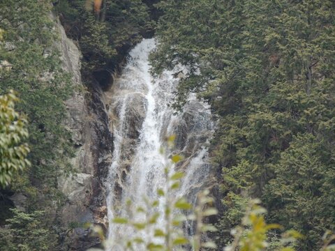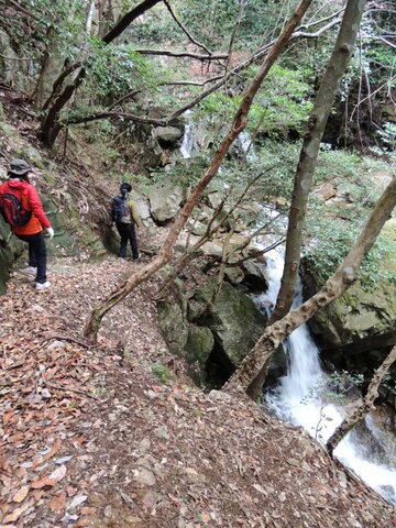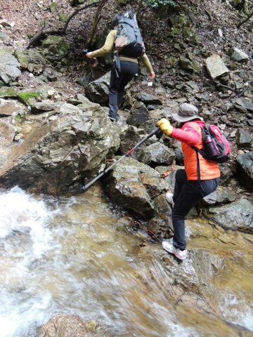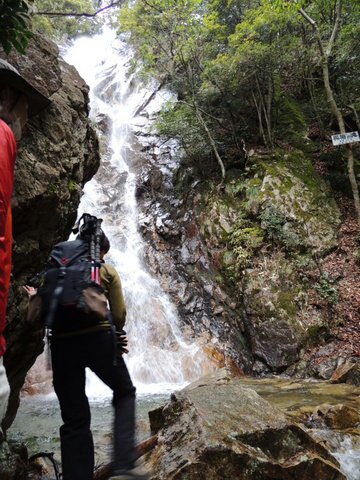 その後はちょっと増量した川の石の上を慎重に渡り、対岸から雌滝の横を上ります。